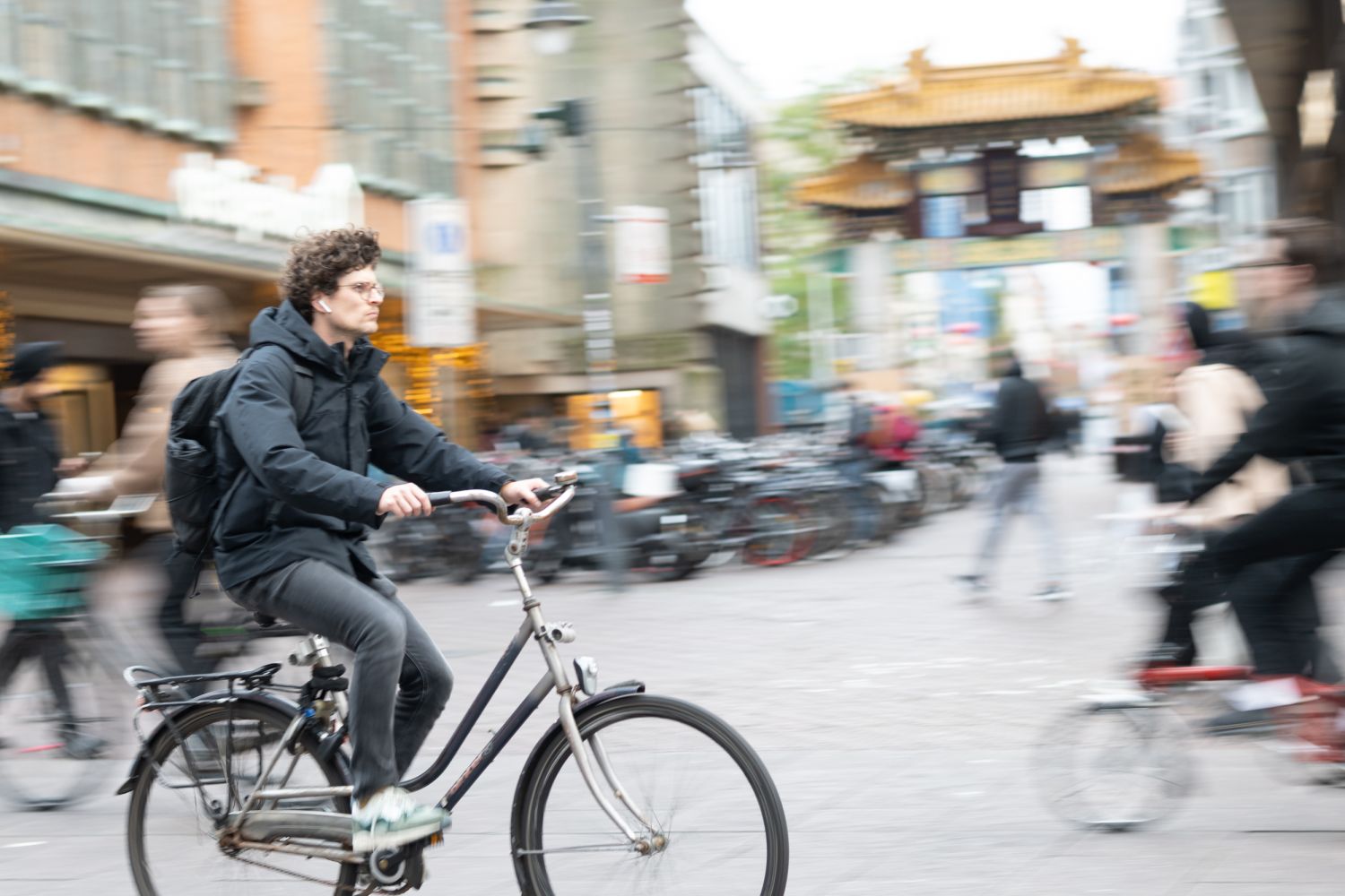 Dynamische Radlerperspektive vor einem der zwei Chinesischen Tore in Den Haag!