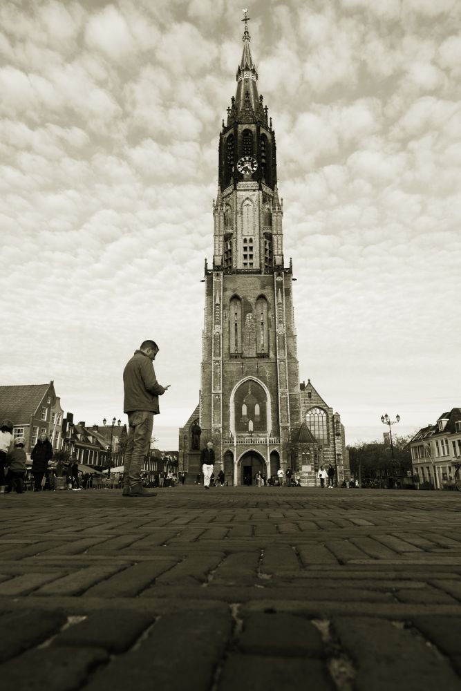 Der Marktplatz in Delft zwischen Rathaus und neuer Kirche.