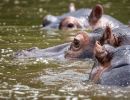 Dieser seltsame Vogel namens Hammerkopf wird scheinbar von einem kleinen Haubenzwergfischer verfolgt.